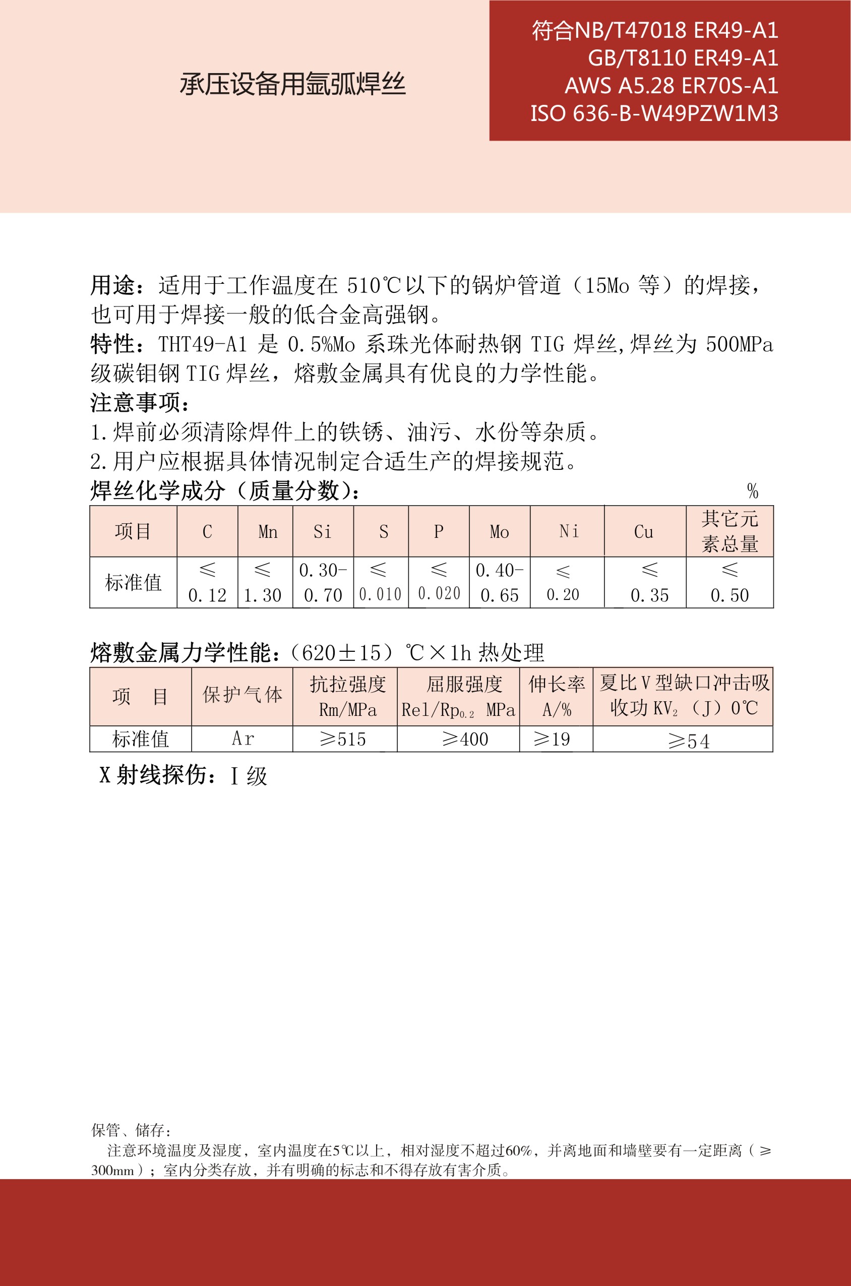 THT49-A1耐热钢焊丝ER70S-A1焊丝
