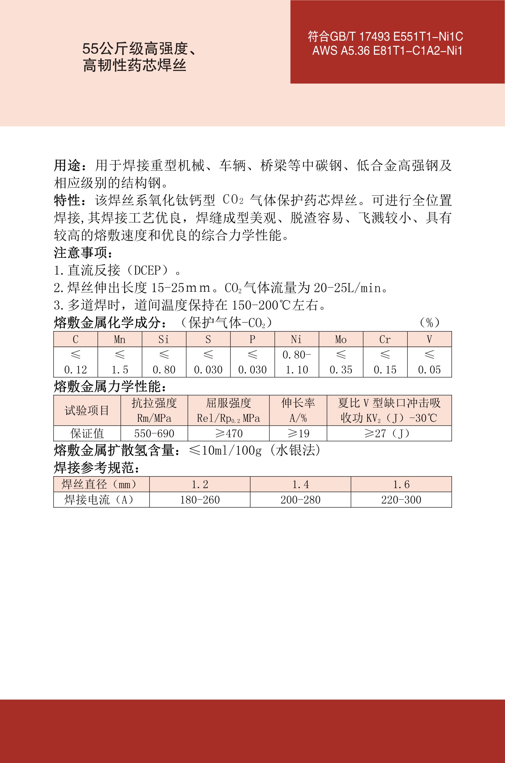 THY-J552Ni-1高强钢药芯焊丝