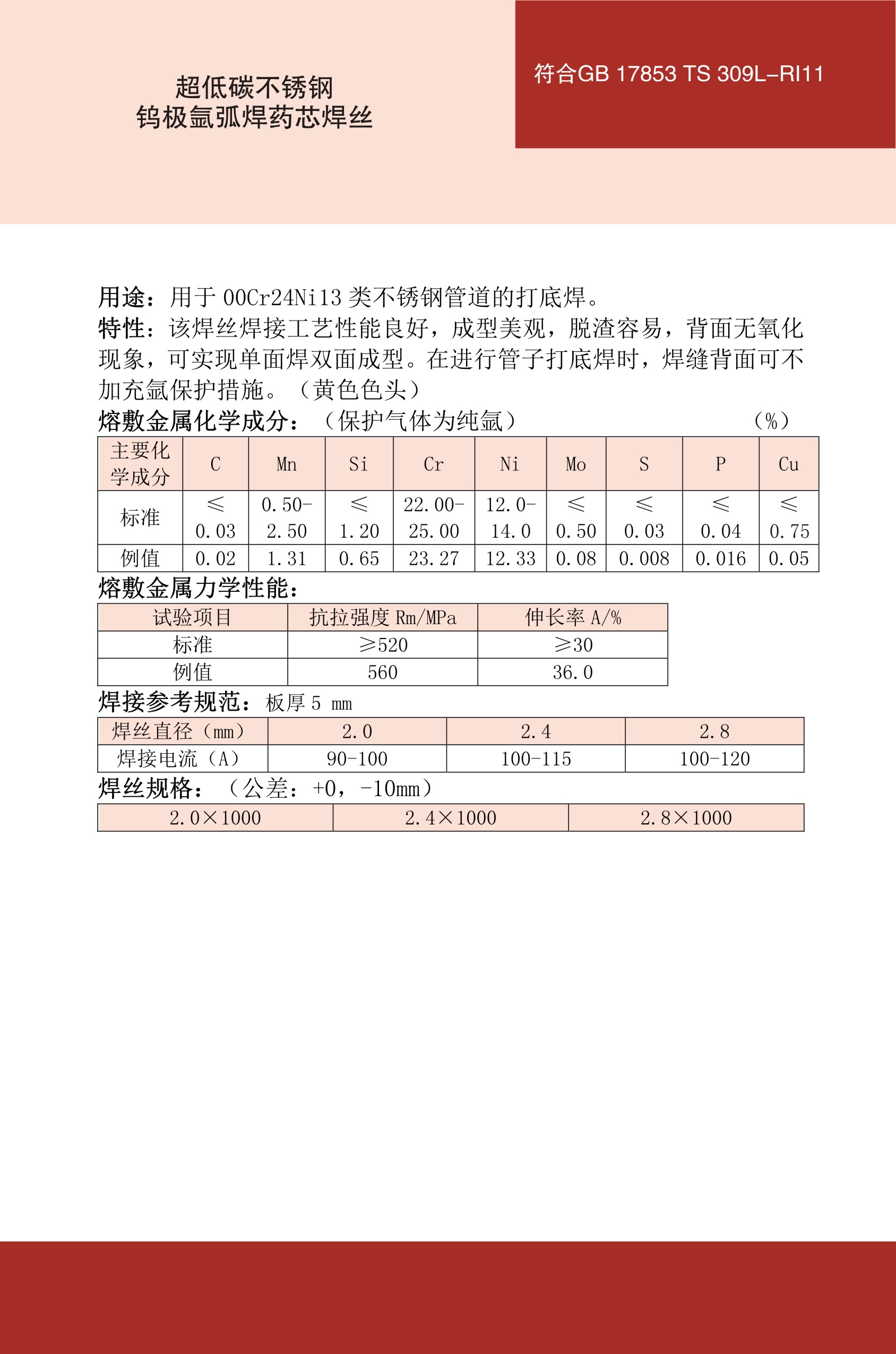THY-A309L(W)不锈钢钨极氩弧焊药芯焊丝