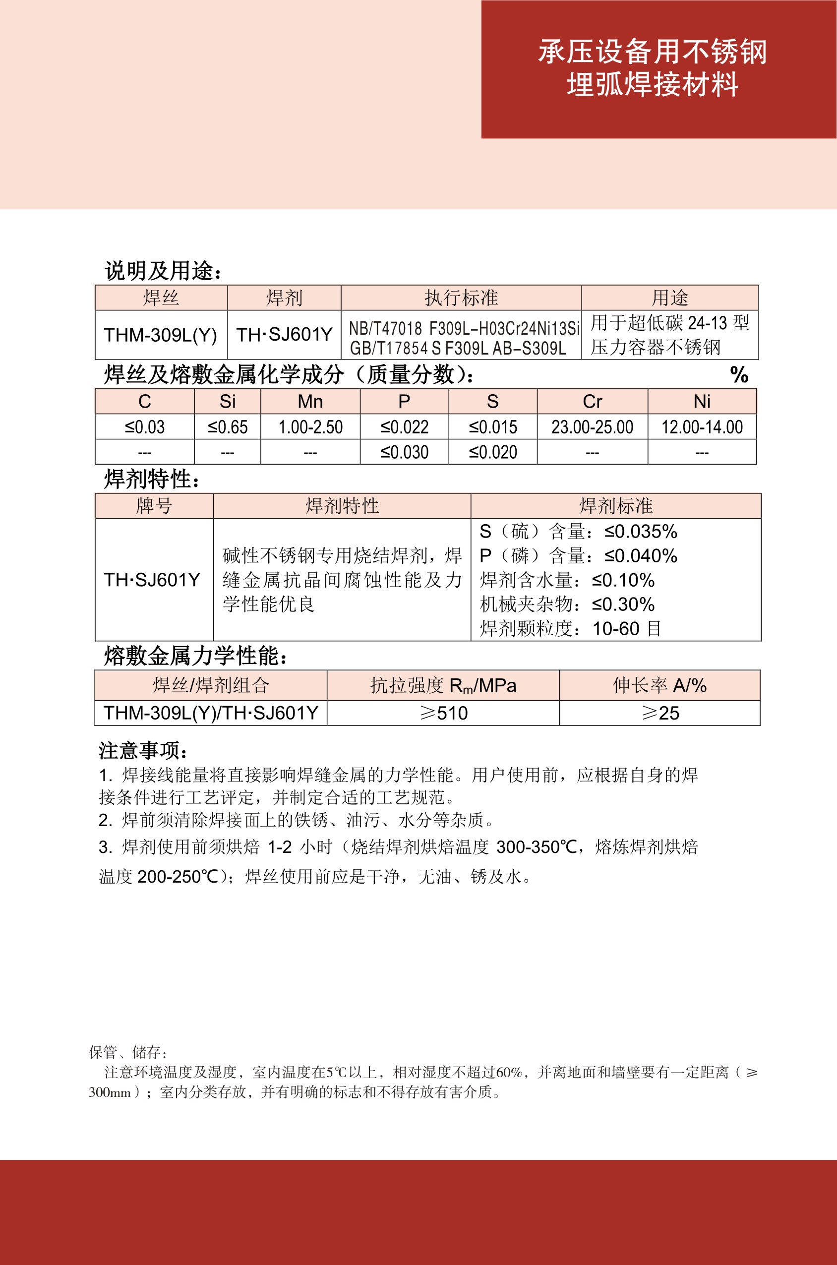 THM-309L(Y)不锈钢埋弧焊丝TH•SJ601Y焊剂