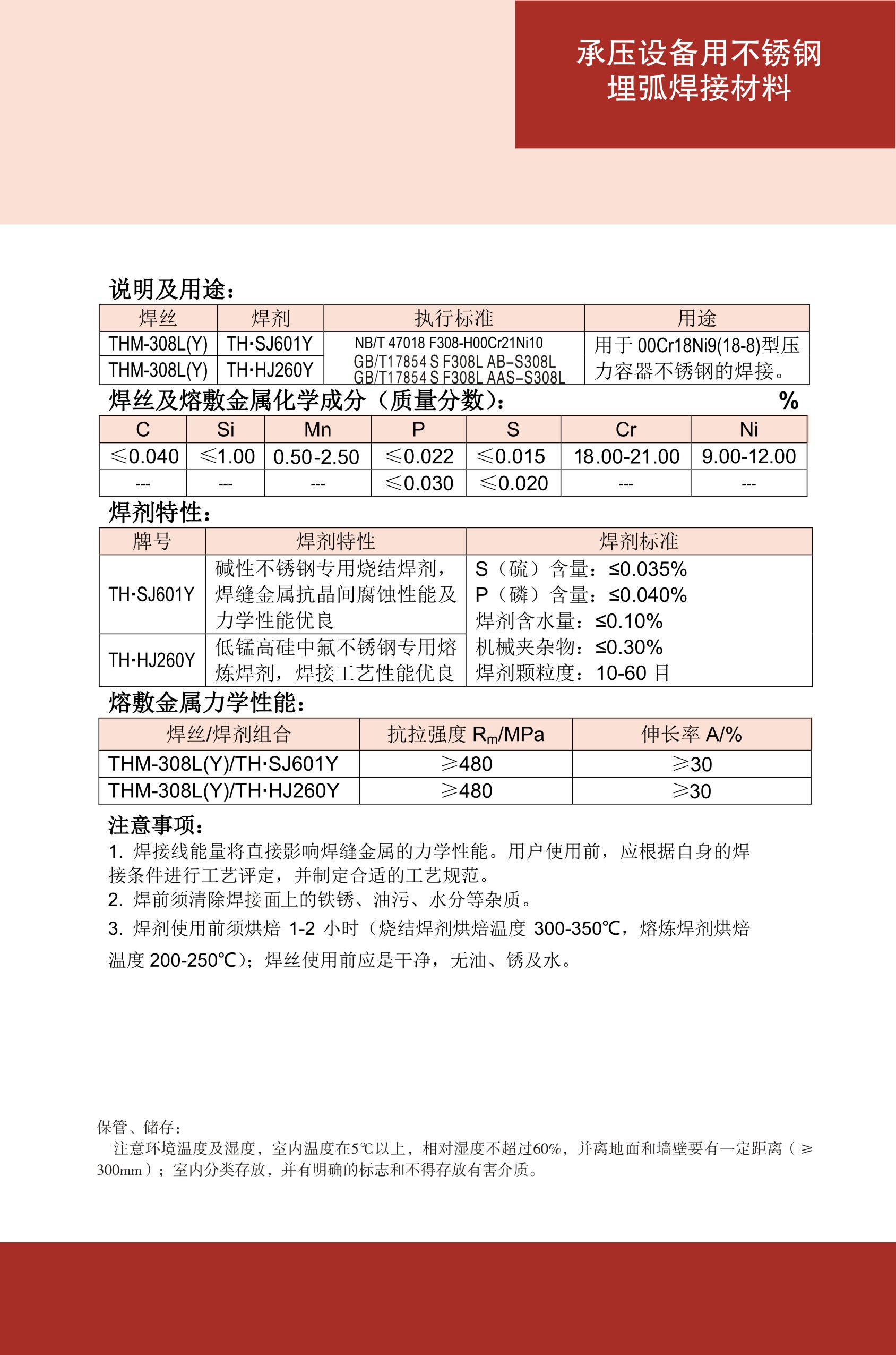 THM-308L(Y)不锈钢埋弧焊丝TH•HJ260Y焊剂
