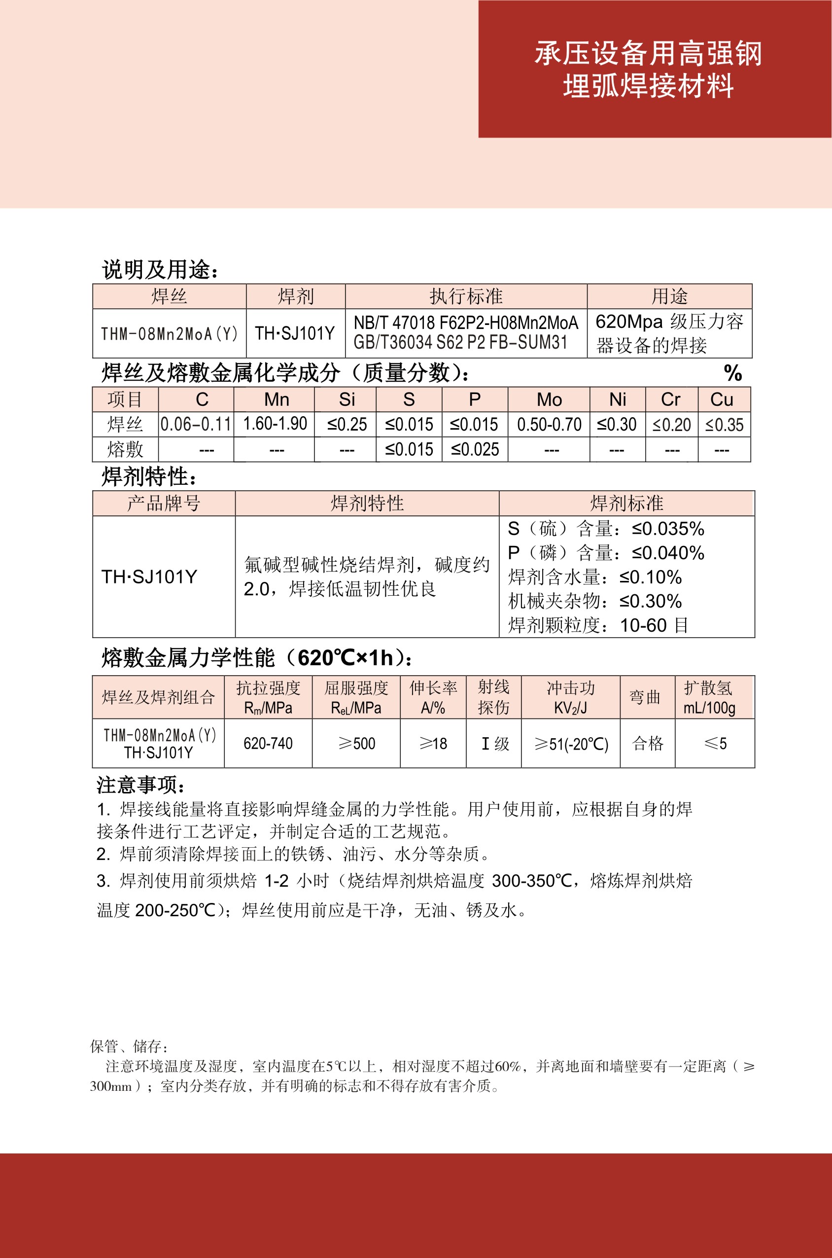 THM-08Mn2MoA(Y)高强钢埋弧焊丝TH•SJ101Y焊剂
