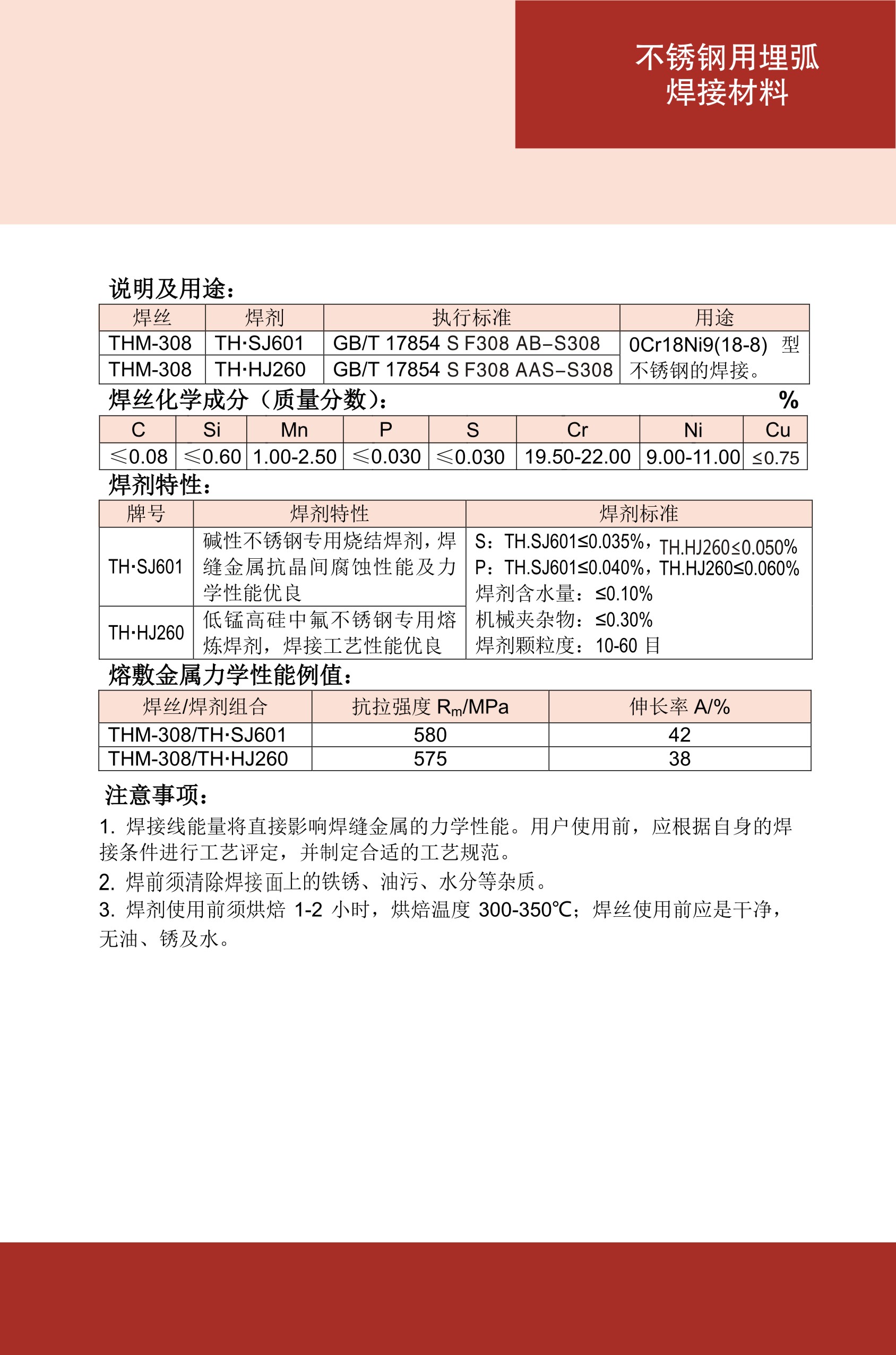 THM-308不锈钢埋弧焊丝TH•HJ260焊剂