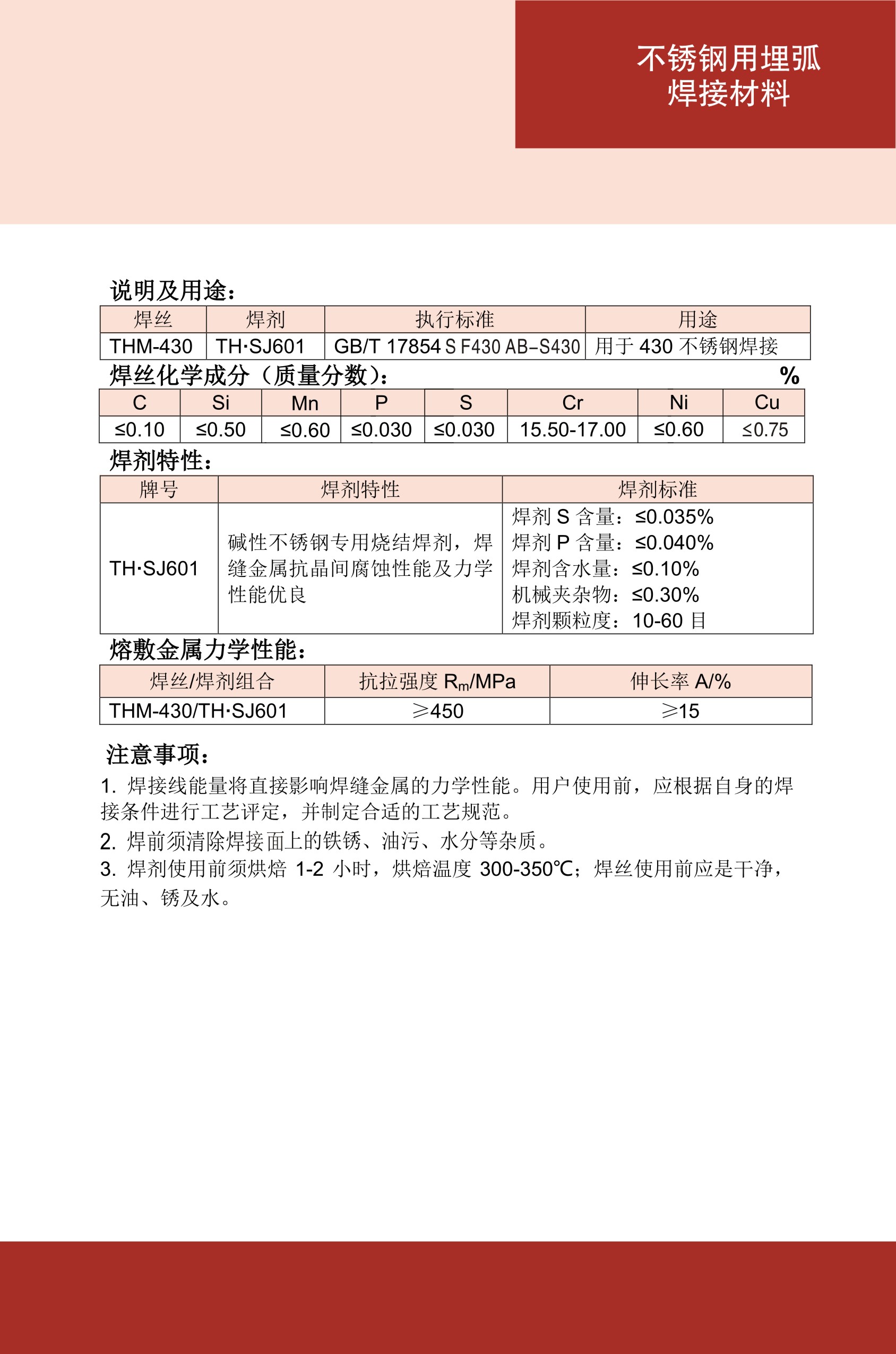 THM-430不锈钢埋弧焊丝TH•SJ601焊剂