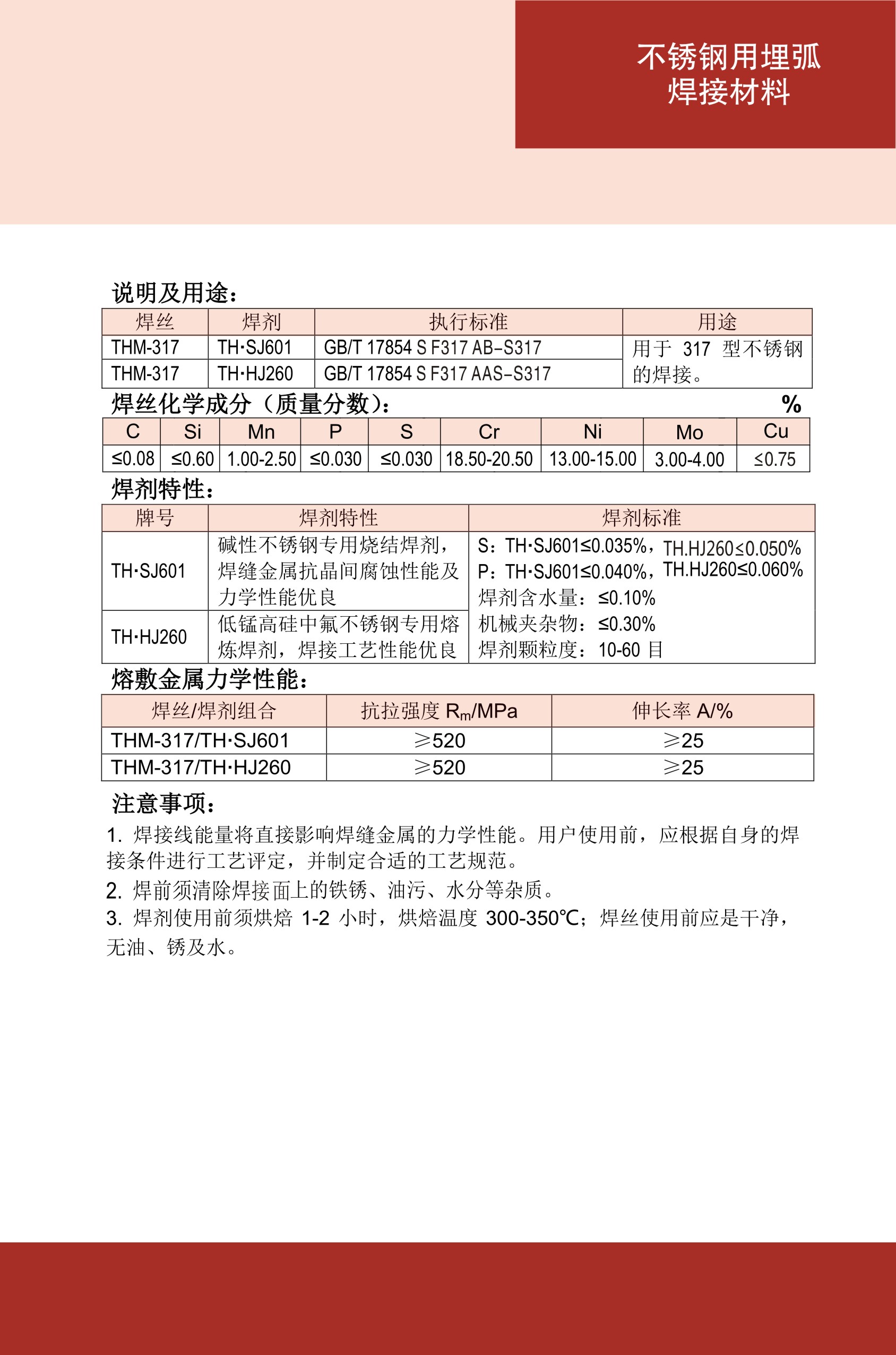 THM-317不锈钢埋弧焊丝TH•SJ601焊剂
