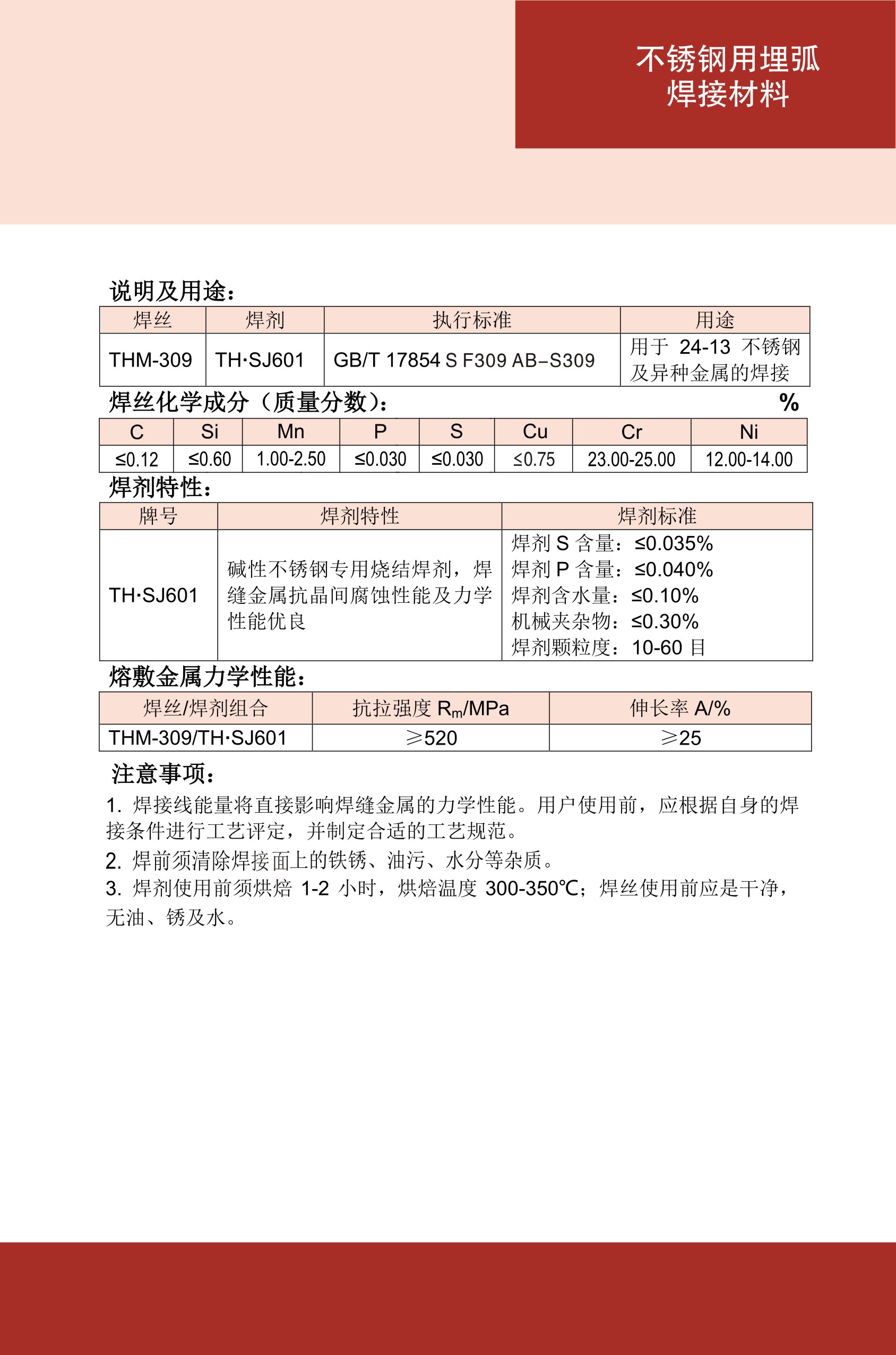 THM-309不锈钢埋弧焊丝TH•SJ601焊剂