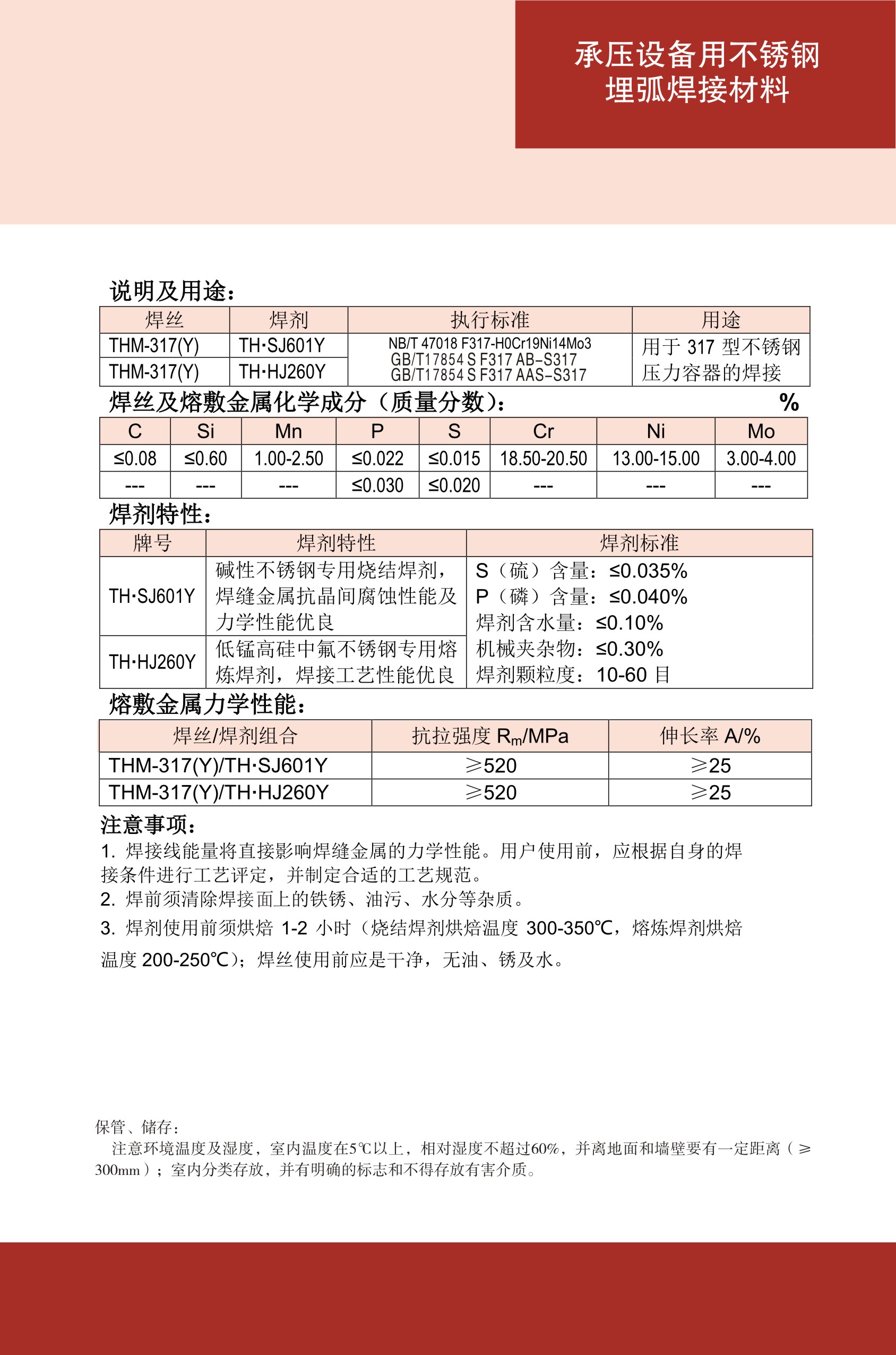 THM-317(Y)不锈钢埋弧焊丝TH•SJ601Y焊剂