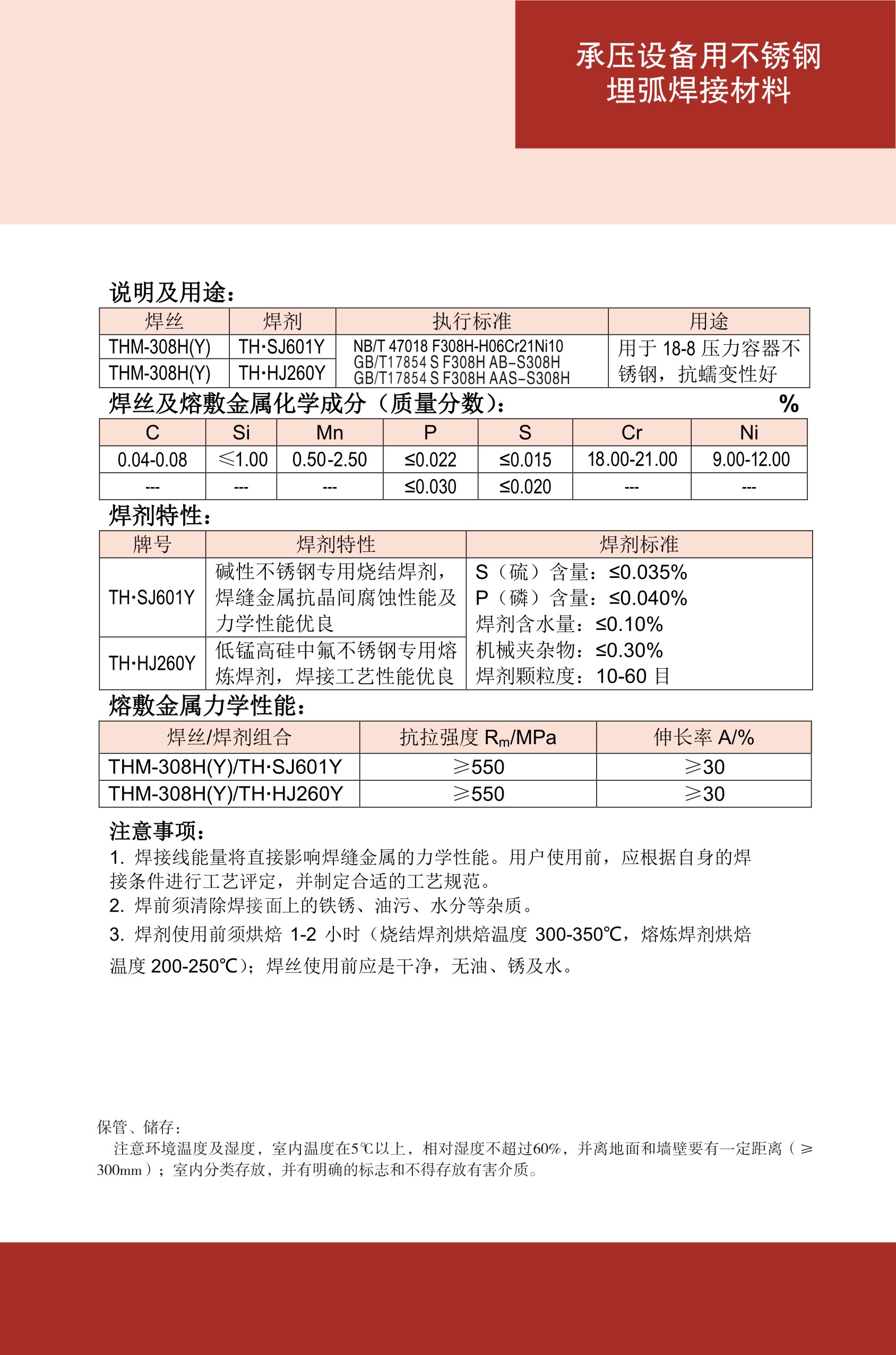 THM-308H(Y)不锈钢埋弧焊丝TH•SJ601Y焊剂