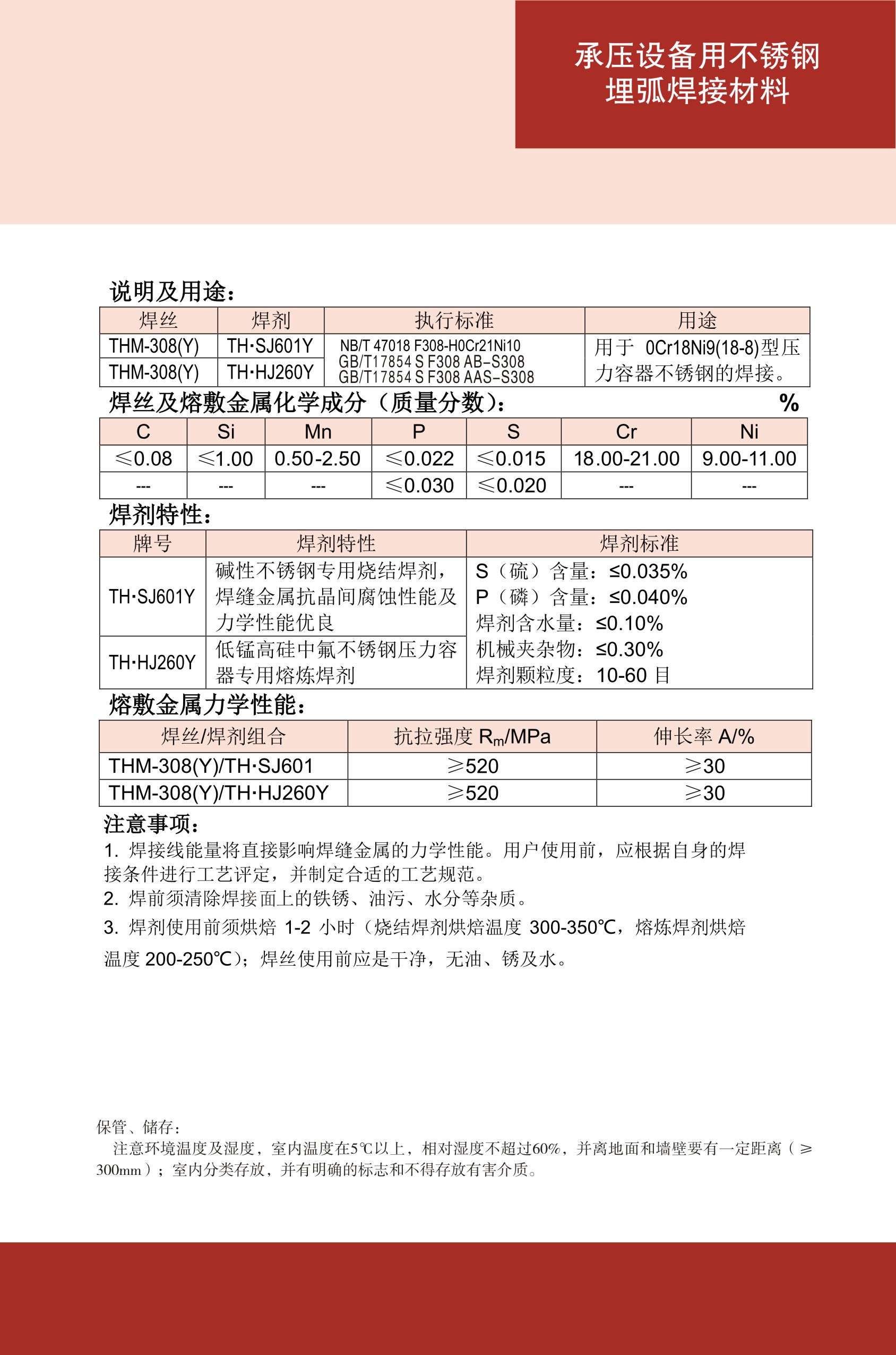 THM-308(Y)不锈钢埋弧焊丝TH•HJ260Y焊剂