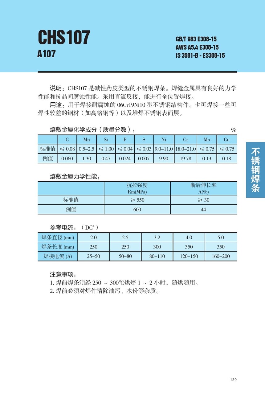 CHS107不锈钢焊条A107焊条