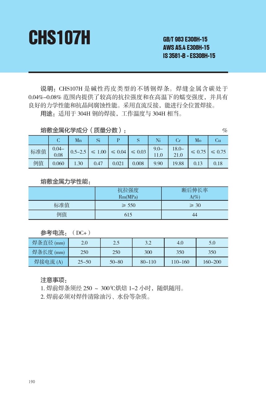 CHS107H不锈钢焊条E308H-15焊条