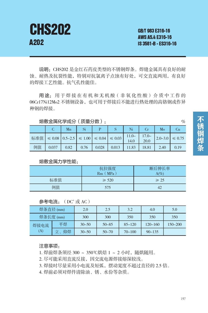 CHS202不锈钢焊条A202焊条