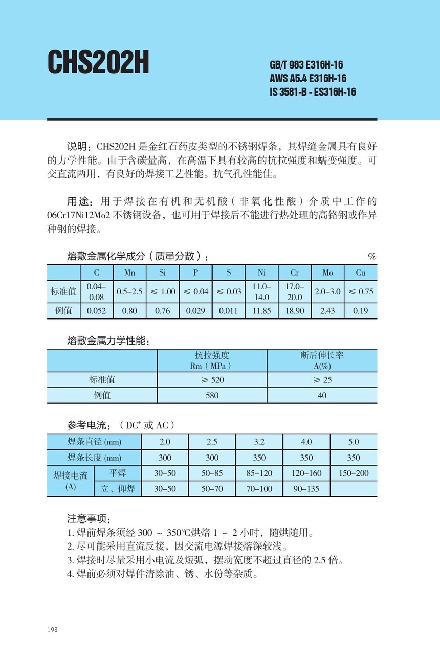 CHS202H不锈钢焊条E316H-16焊条