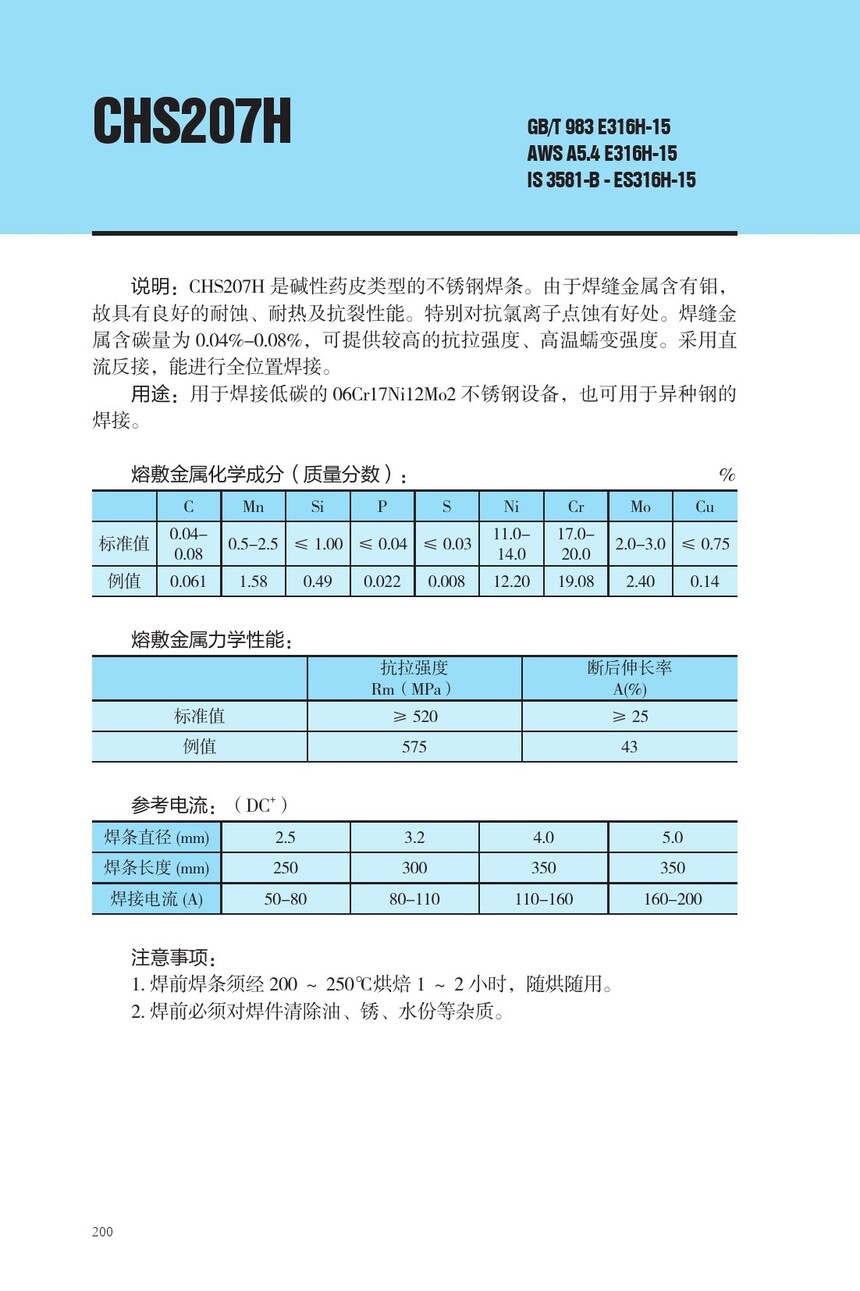 CHS207H不锈钢焊条E316H-15焊条
