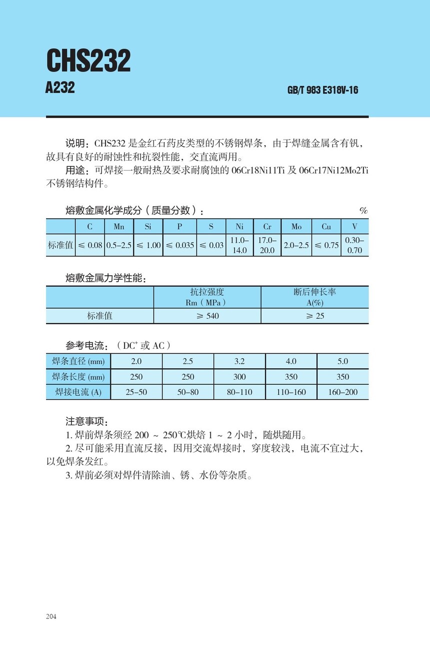 CHS232不锈钢焊条A232焊条