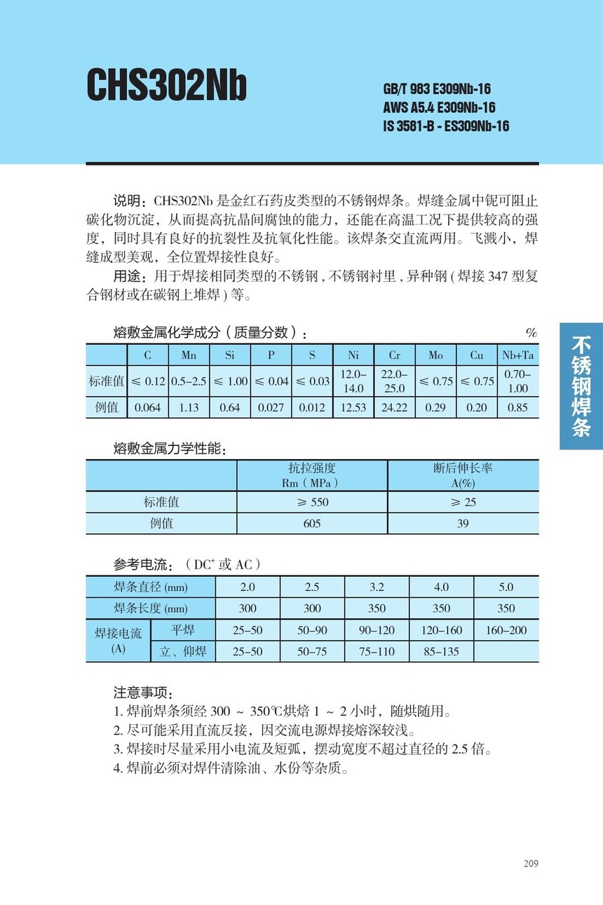 CHS302Nb不锈钢焊条E309Nb-16焊条