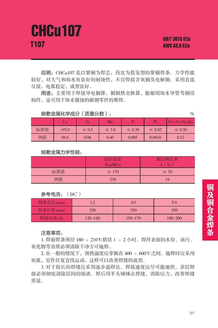 CHCu107铜焊条T107紫铜焊条