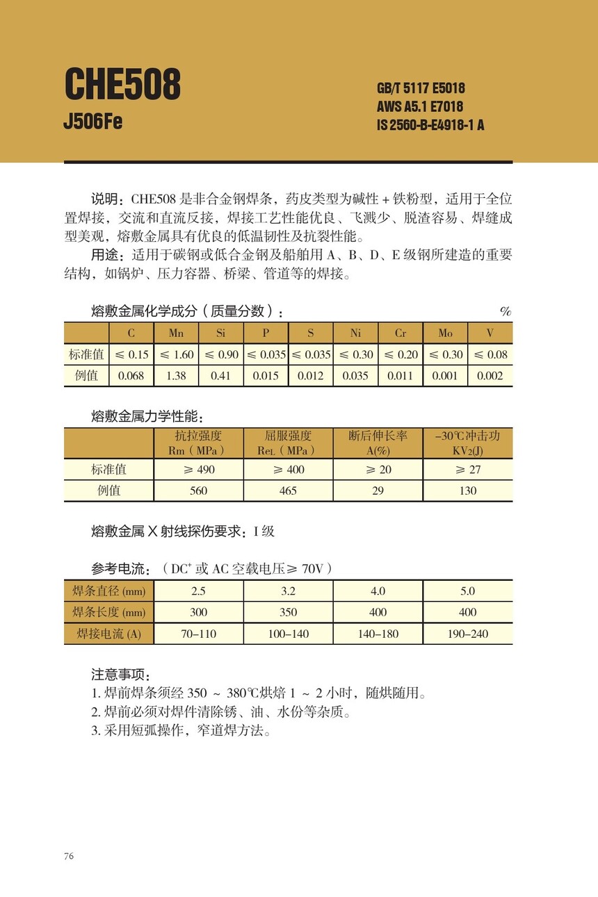 CHE508碳钢焊条J506Fe电焊条