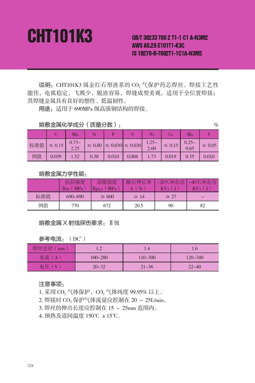 CHT101K3高强钢药芯焊丝E101T1-K3C药芯焊丝