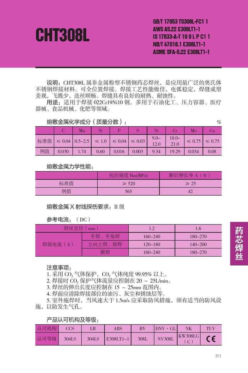CHT308L不锈钢药芯焊丝E308LT1-1焊丝