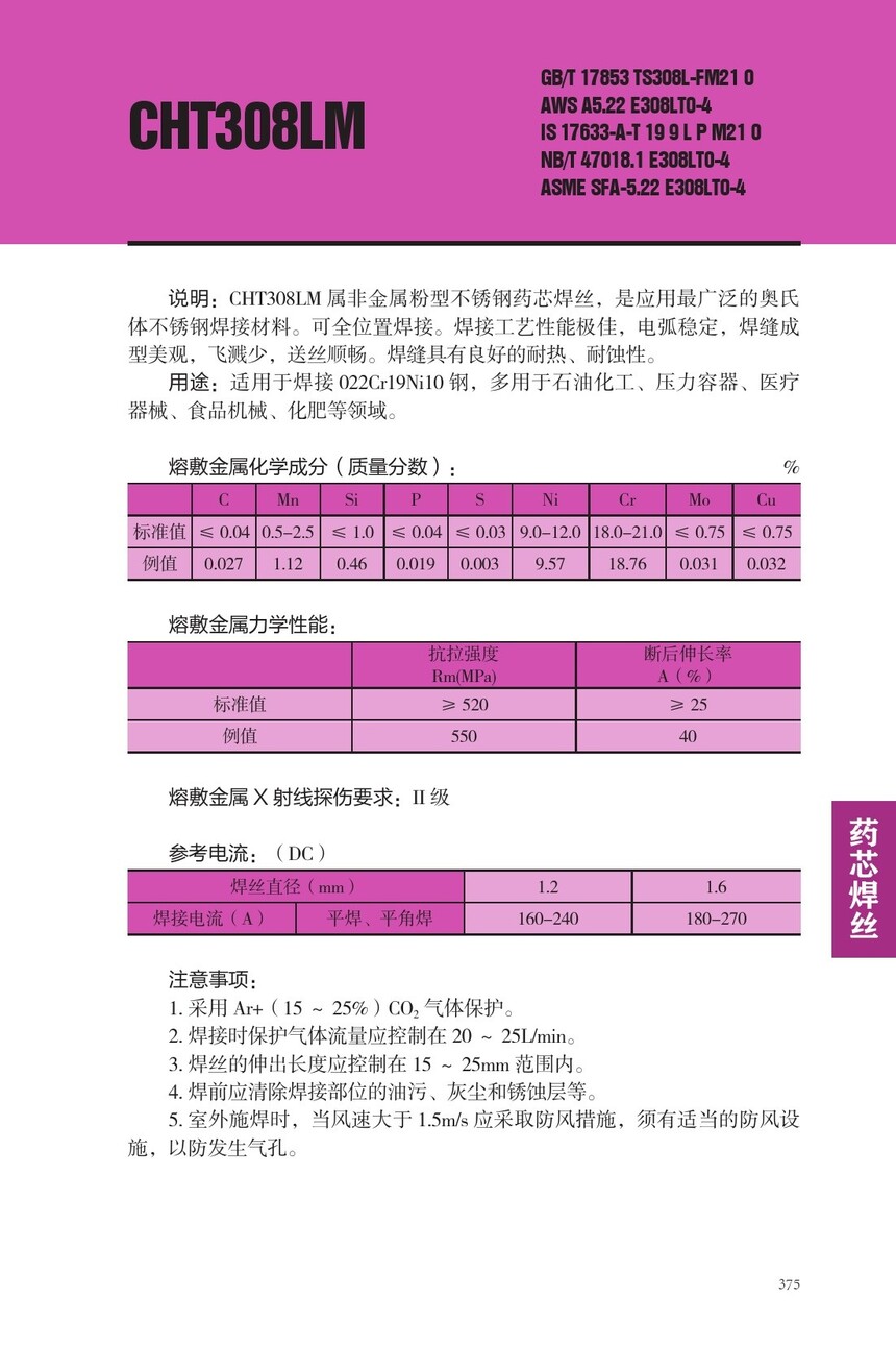 CHT308LM不锈钢药芯焊丝E308LT0-4焊丝