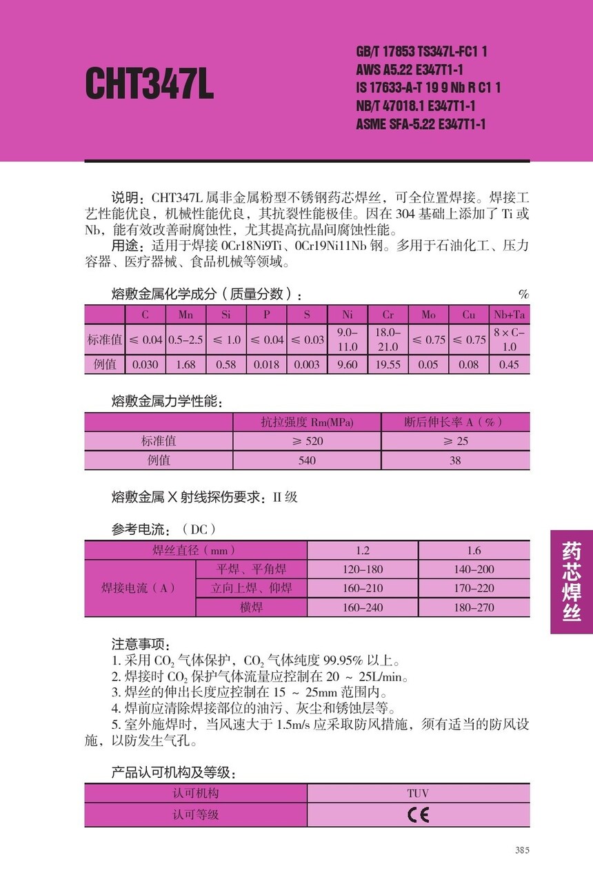 CHT347L不锈钢药芯焊丝E347LT1-1焊丝