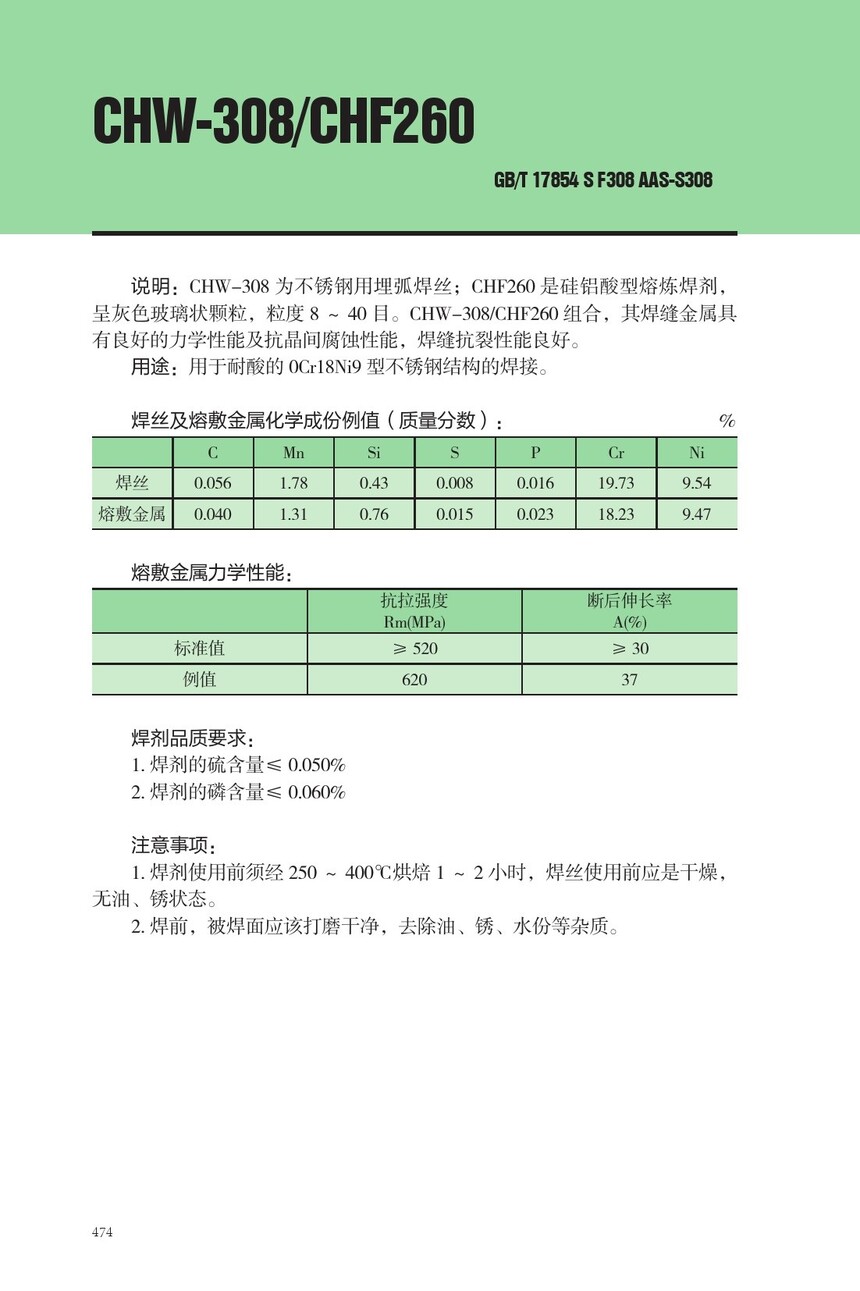 CHW-308L不锈钢埋弧焊丝CHF260焊剂