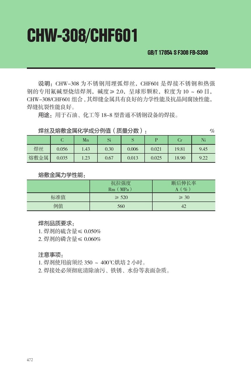 CHW-308L不锈钢埋弧焊丝CHF601焊剂