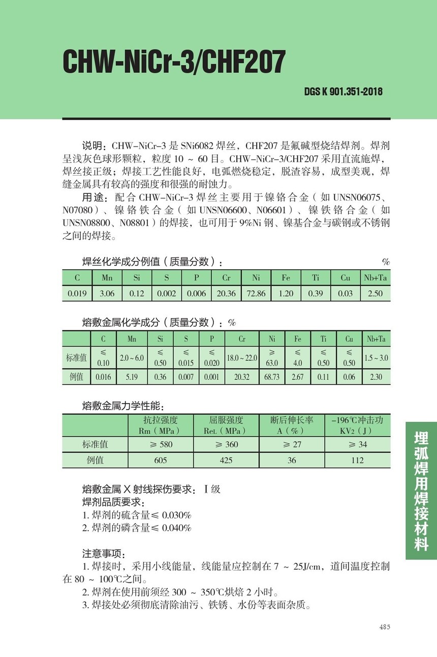 CHW-NiCr-3镍基埋弧焊丝CHF207焊剂