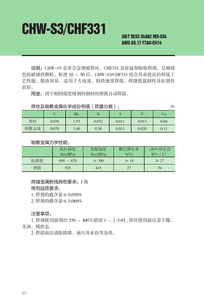 CHW-S3埋弧焊丝CHF331焊剂