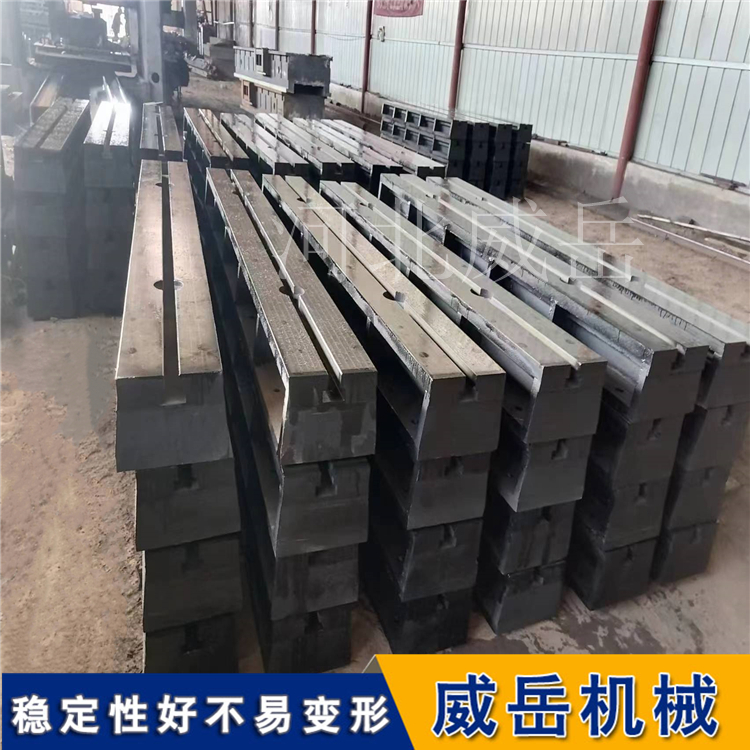 T型槽地轨精选HT250灰铸铁为原料,采用整体铸造工艺成型,经自然时效与人工时效双重应力处理,规避铸造及加工过程中产生的内应力,防止长期使用后的变形、开裂问题,保障地轨精度稳定。地轨整体刚性强,台面经铣削与人工刮研加工,平面度、直线度均达标准,表面粗糙度Ra≤0.8μm,为设备安装提供超平整、超基准面,让机械安装的同轴度、平行度误差控制在微米级,从源头保障设备运行精度。