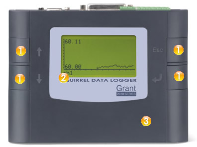 1、用这4个按键和图形显示屏对记录仪进行配置 - 不需要用PC进行配置;