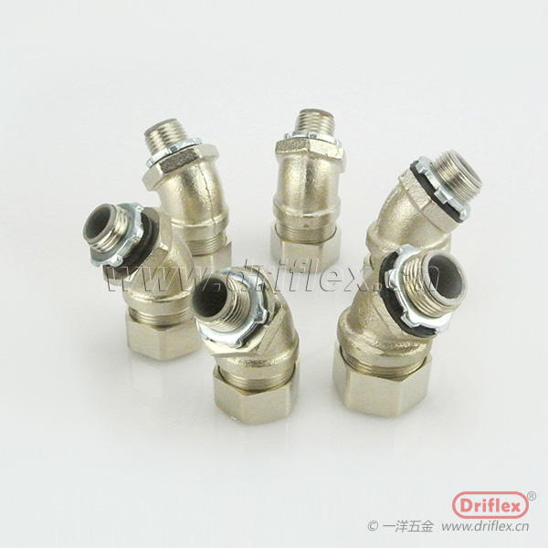 铜镀镍45度弯头外螺纹金属软管连接器内径12到51mm