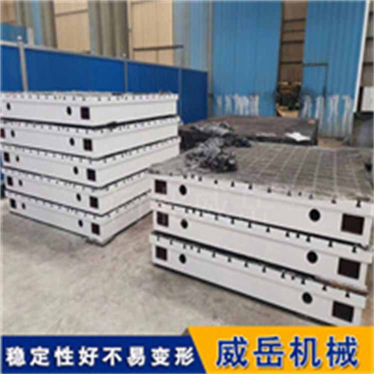 稳定性强是T型槽试验平台赢得信任的关键因素。它多采用箱体式或网格状加强筋结构,结合铸铁材质本身的高密度特性,额定承载可达2 - 5kg/cm²,可长期承受数吨重的设备或工件。同时铸铁的阻尼特性能有效吸收作业振动,即使在焊接、装配等动态场景中,也能保持平面度稳定,精度衰减率低于10%。在重型机械试验、大型工件检测等重载工况下,它就像“定海神针”,凭借“材质抗振+结构稳载+T型槽固位”的三重协同,能实现好的稳振效果,将振动衰减变低,为重载试验与检测筑牢基准根基。http://www.chinaweiyue.com/