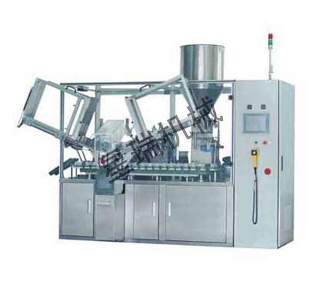 RGDF-160B全自动灌装封尾机是一种对筒状金属软管或复合软管灌装膏状 物料并进行封尾的自动化程度较高的设备。符合GMP标准的新型不锈钢蝶阀计量泵,设有螺杆微调机构,秤量精确;采用光电识标机构,PLC可编程序控制,商标定位精确可靠;变频调速,复开森机构分度定位,采用国际最新型折边封尾机构。