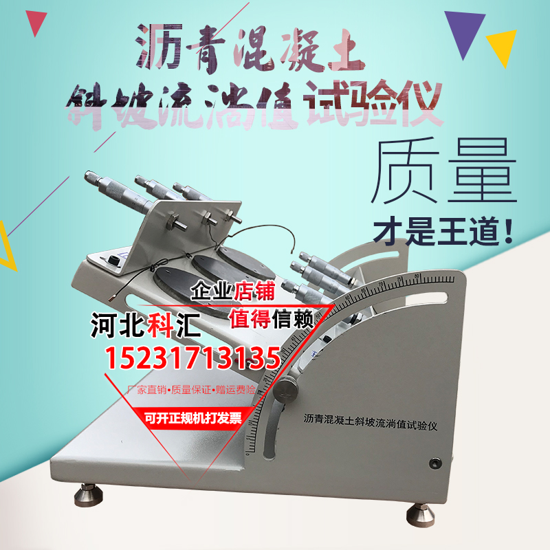 适用于测定用于测定沥青混凝土斜坡流淌值。适用于骨料大粒径不大于26.5mm室内成型的试件和现场钻取的芯样。