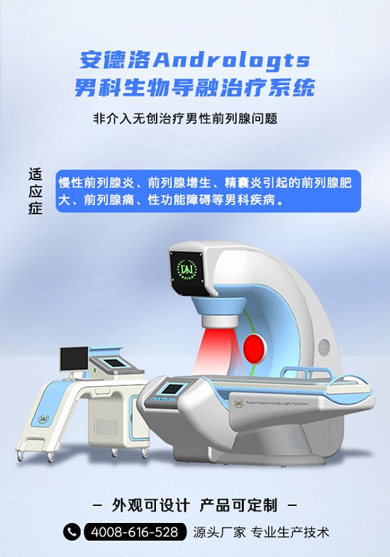 公司产品安德洛男科生物导融治疗系统是一款治疗前列腺炎的设备,具有三大功能,可任选一种或综合各功能同时使用。