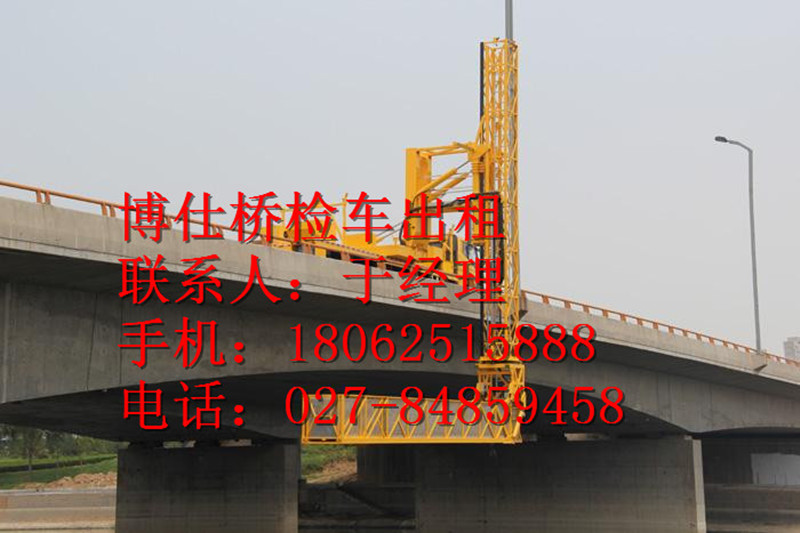 博仕设备租赁有限公司的桥检车安全可靠,采用新型优质型碳钢,强度高、重量轻、架设速度快,作业臂可左、右360°连续旋转,工作斗自动调平,外置拉杆强制平衡;采用进口换向阀及液压油缸,换向平稳,操作灵活;采用电液比例阀控制臂的动作,平稳性好;转台、工作斗双工位操作,使用方便,工作台即可升高又可水平延伸,易于跨越障碍物到达工作位置;支腿与工作臂互锁,安全可靠,防止误操作发生意外;H型支腿,跨距大,稳定性好,支腿即可独立伸缩,又可联动,能实现整车在不平路上调平;装有支腿报闪灯,用于作业时支腿示廓,发出光报警信号;带动力应急单元,主臂带可伸缩式吊钩等部件组成。