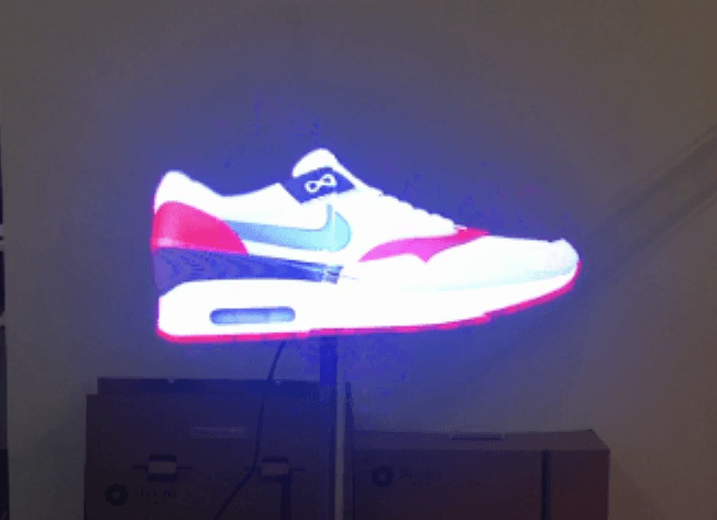 全息广告机,LED灯条旋转显示,利用人眼暂留原理,形成图形、动画或者视频,因其无边框和背景,让用户感觉图像是立体漂浮的,故称全息广告机或全息扇。