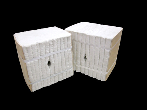 陶瓷纤维模块用对应材质的陶瓷纤维毯按纤维组件结构、尺寸,由专用机械设备加工而成。其保持一定比例的压缩量,以保证陶瓷纤维组件壁衬砌筑完毕后,陶瓷纤维组件在不同方向的膨胀,使陶瓷纤维组件之间相互挤成一个无缝隙的整体。陶瓷纤维组件通过各种形式的锚固件直接固定于工业窑炉炉壳上。