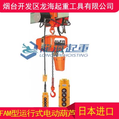 1、日本FAM型运行式电动葫芦的节能型马达与高可靠性DC制动器组合使用,结构简单,易于维护;