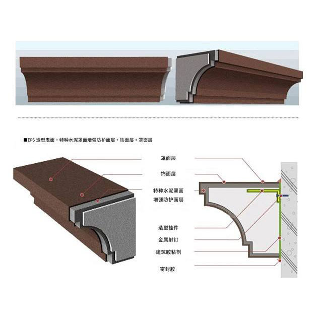 4、外墙eps构件具有建筑功能性的装饰材料,能有效的防止冷、热桥产生。具有安装方便、经济、耐久性长等优势。