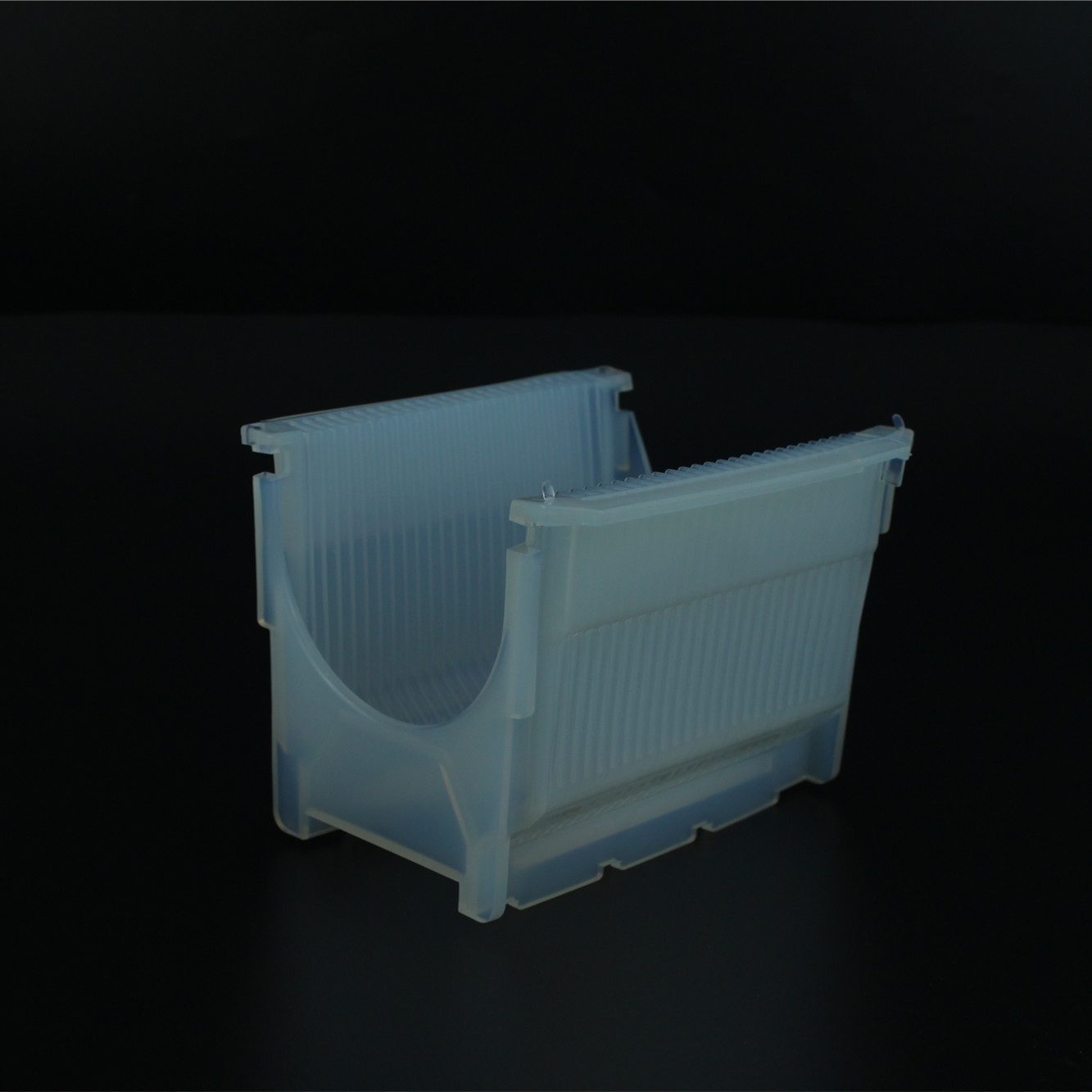 PFA花篮又叫PFA清洗花蓝 、 特氟龙卡匣、 特氟龙晶舟盒、特氟龙晶圆盒、特氟龙晶片清洗架、特氟龙晶圆架、特氟龙刻蚀花篮、特氟龙刻蚀清洗架、PFA显影花篮