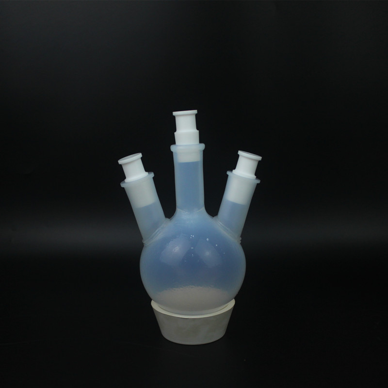 所有PFA三颈圆底烧瓶标准锥形外关节中心颈和两个额外的20°角侧颈。耐温260°C