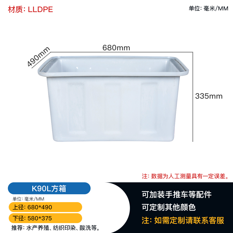 90L塑料方箱存储转运牛筋箱水产养殖水箱