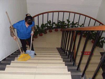 5、 保持公共场所楼梯扶手、窗台表面无灰尘,光洁明亮,做到每天擦两遍,保持环境美观;
