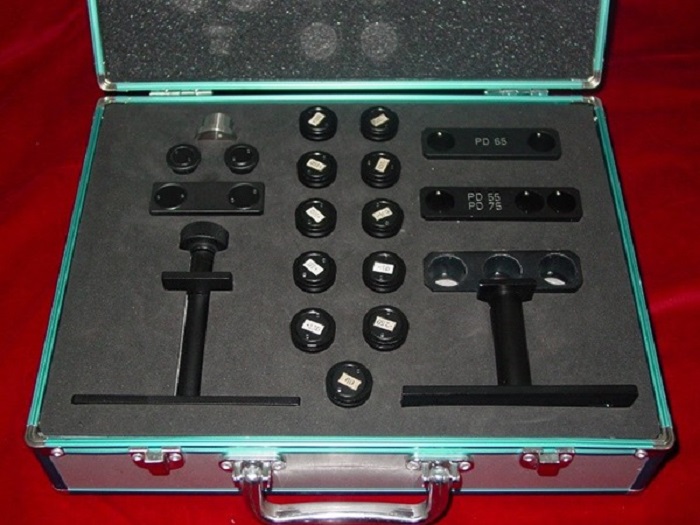 3、瞳距标准器:由三个标称值为55mm,65mm和75mm的标准套筒组成,标准套筒内可安装0 m-1客观模拟眼,用于检定客观式验光机的瞳距示值误差。