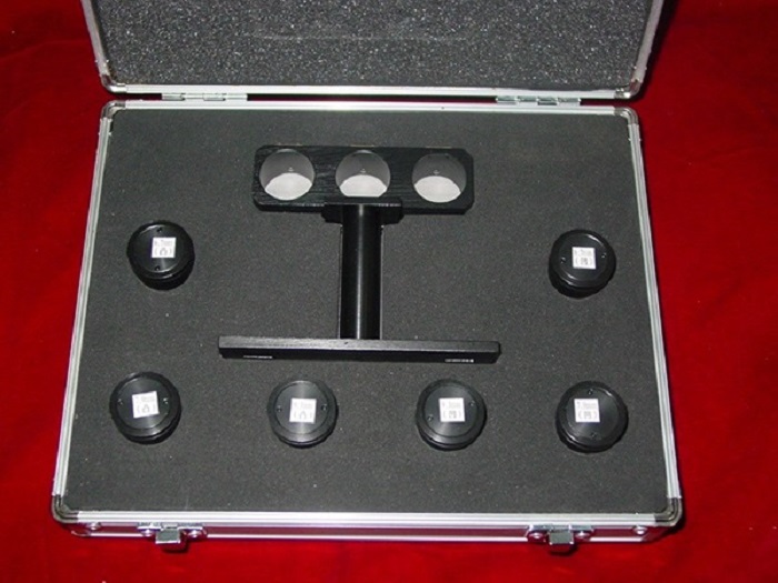 曲率半径用标准器:由光学玻璃材料制成,具有凸球面和凹球面两种表面形状,三种半径规格,共计六个标准器。曲率半径标称值分别为6.67mm,7.94mm和9.32mm,对应的角膜屈光度标称值分别为50.61m-1、42.49m-1和36.21m-1。