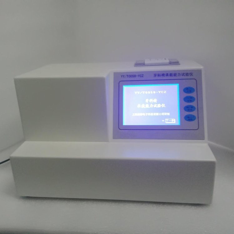 牙科椅承载能力试验仪采用7英寸真彩液晶触控显示屏,中文菜单显示。公称规格、试验载荷、打印、测试、上行、下行、时间、标定。由键盘控制液晶显示屏上的菜单,自动记录平面度数据,平均值、最大值、最小值等;自动输出数据报告,机载打印测试数据,完全符合YY/T 0058-2015牙科学 病人椅标准最新试验方法规定。