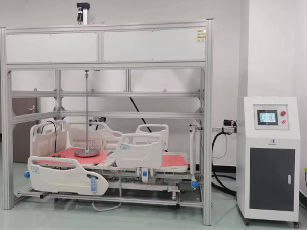 医用病床疲劳强度试验机符合YY9706.252-2021标准要求,用于检测病床护栏强度和锁存器可靠性的设备,试验机使用PLC+触摸屏控制,伺服电机驱动,力传感器感应反馈施加在病床护栏上的力。可以控制电缸实现向前施力、向后施力以及往复施力,试验机还可以测试病床的静负荷能力。